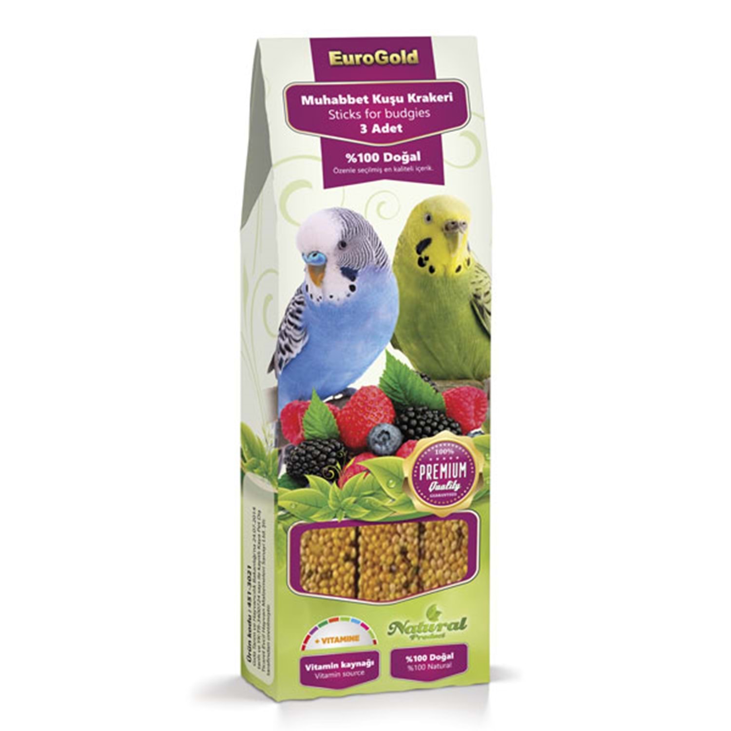 EuroGold muhabbet kuşu krakeri bir çok faydası olan sağlıklı ve lezzetli bir ödül mamasıdır. İçerdiği muhteşem gıdalar ile birlikte çok cazip bir egzersiz ve oyun ürünüdür. Krakerler yüksek kalite tahıl tohum ve bal ihtiva etmektedir.